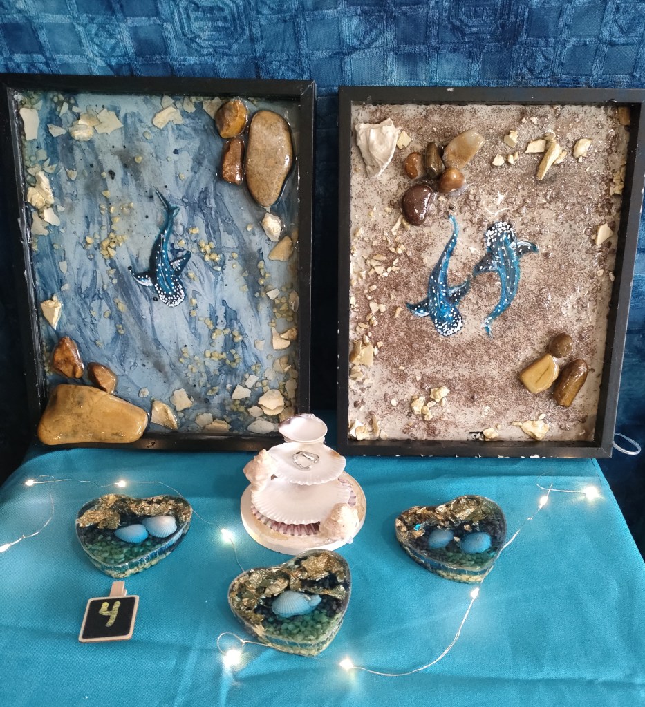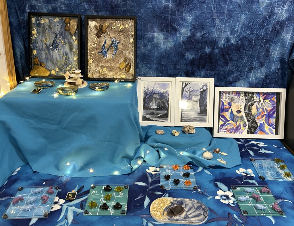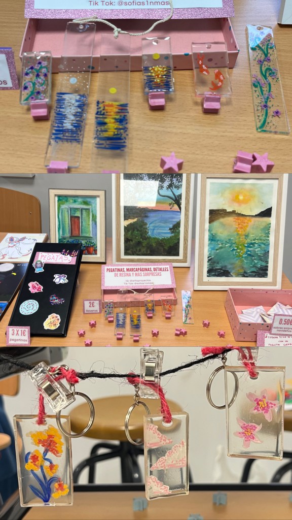 Expongo y vendo obras originales y objetos artísticos hechos a mano: marcapáginas y llaveros de resina, joyeros artesanales, prints, ilustraciones en acuarela, cuadros, imanes y stickers. Cada creación está diseñada con mimo, luz y color, pensada para llevar un pedacito de arte a tu día a día.